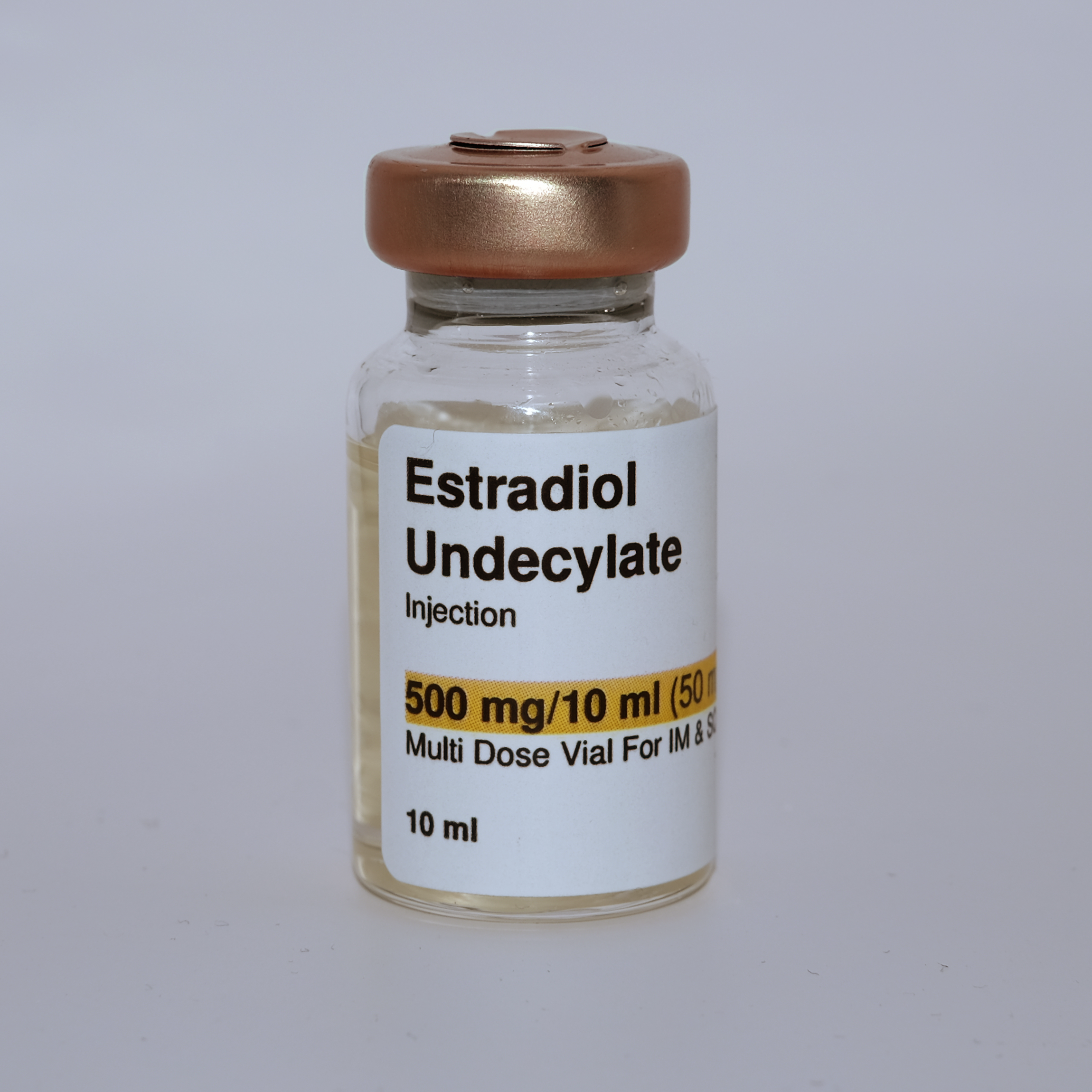 Estradiol Undecylate is an estered form of bioidentical estradiol suspended in an oil solution making it suitable for subcutaneous and intramuscular injections. Esterification is the process of combining Estradiol with an acid which the human body will then slowly break down over time, creating a slow-release form of the medication so that it can be delivered as larger injections at lower frequencies, typically around weekly. Estradiol has been delivered in this form for almost a century and it's a well-studied, safe and convenient process. Estradiol Undecylate has a biological half-life of ~30 days.